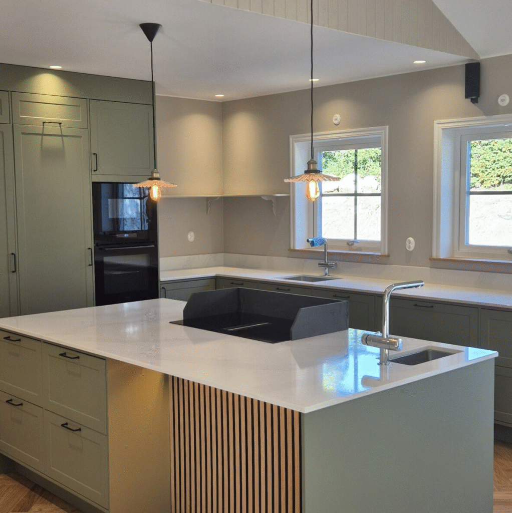 Elinstallation i ny villa i Dalby. I nära samarbete med kunden blev resultatet en smart villa med Plejd-system samtidigt som vi använde Renova-apparater för en äldre stil.